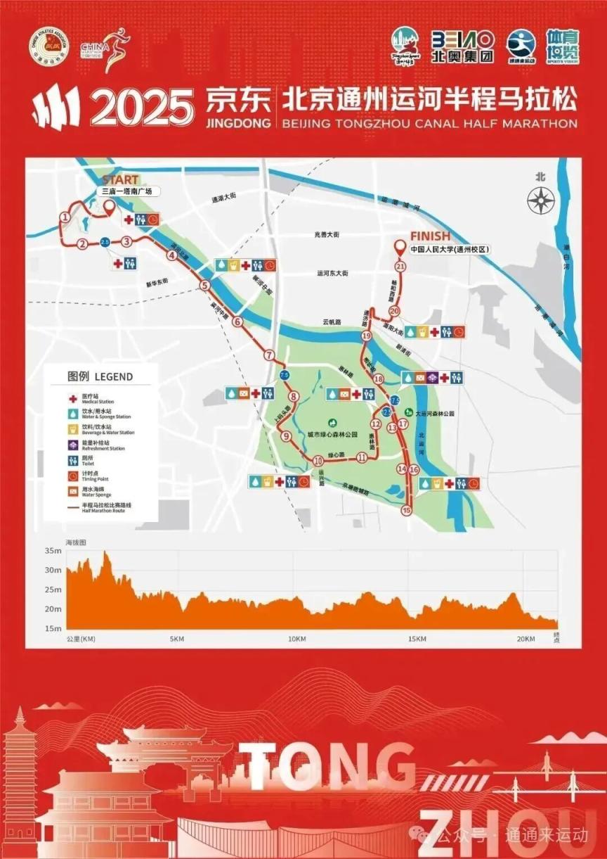 本次赛事技俩为半程马拉松,赛谈全程21.0975公里。起首设在通州区司空分署街,路过北京(通州)大运河文化旅游景区、运河商务区、副中心三大文化按序、绿心丛林公园,止境配置于中国东谈主民大学通州校区。